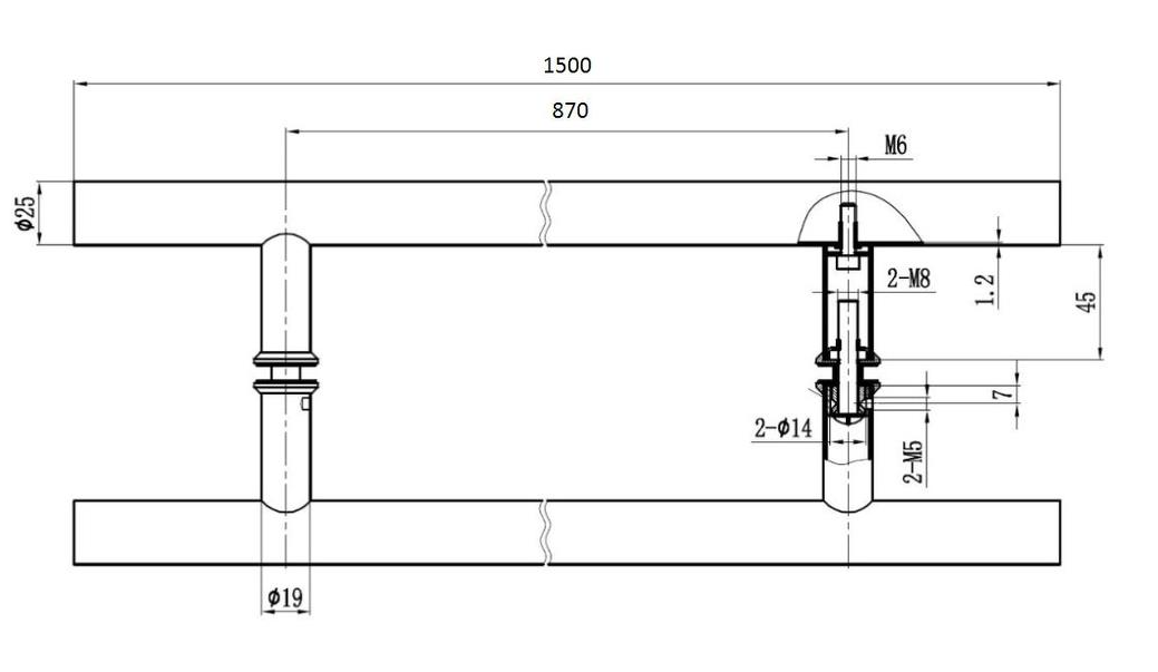Dusjhåndtak «Oder» 8-12mm glass, Ø25x1500mm (Børstet stål)
