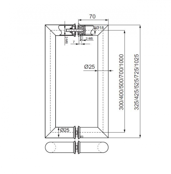 Dusjhåndtak «Rhine» 8-12mm glass, Ø25x725mm (Børstet stål)
