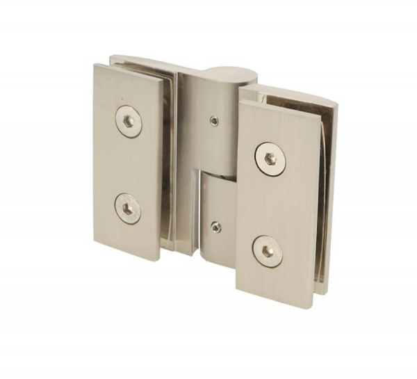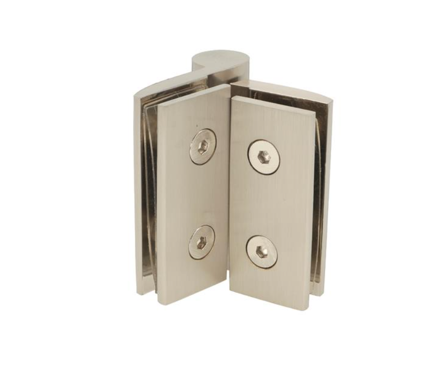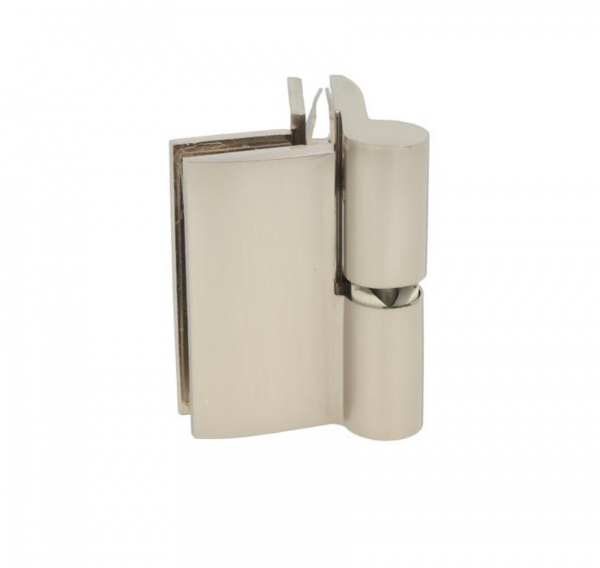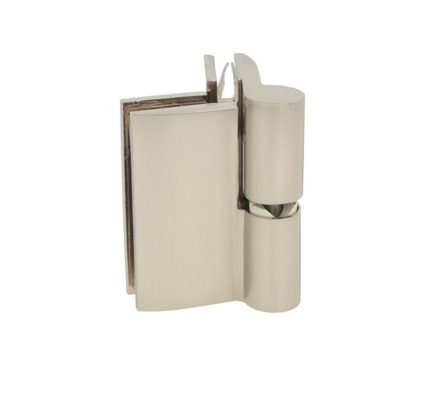 Foldehengsel 180°, børstet stål, høyrevendt, 6-8mm glass
